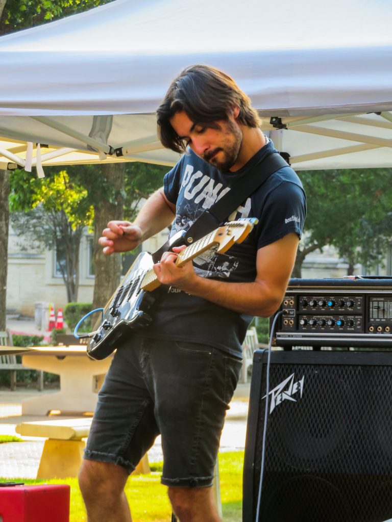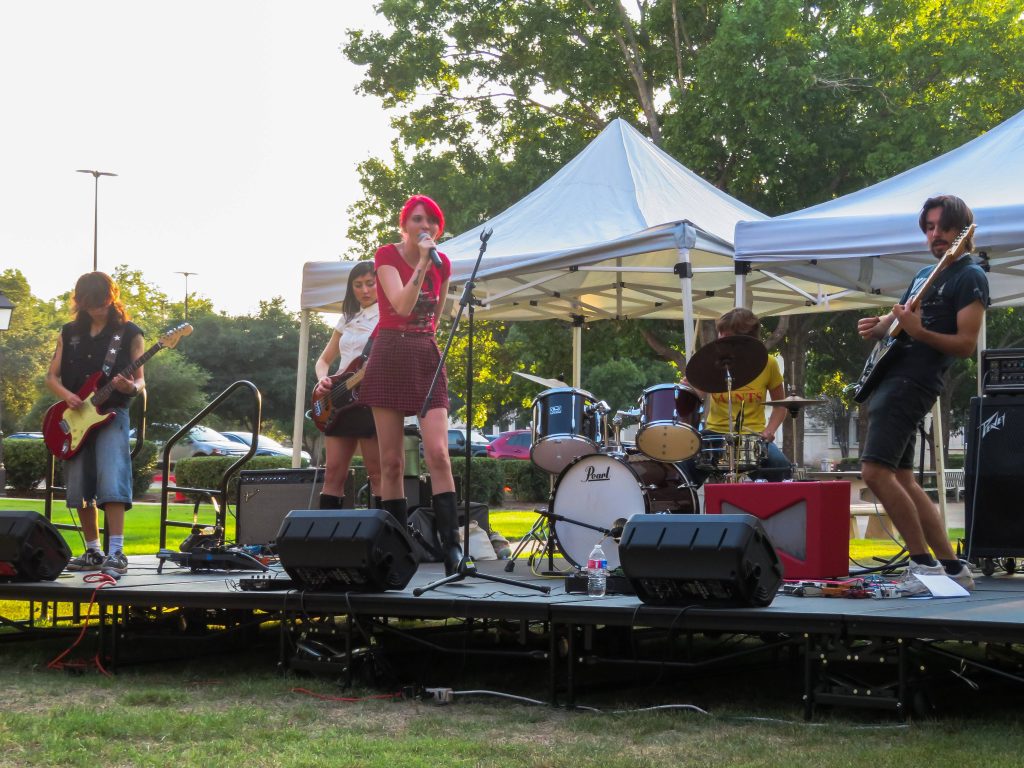 To begin the thread of Friday Night Live performances hosted by Student Activities, on Friday September 19th, students gathered in the first-year courtyard for a concert performed by local singer Bee Blackwell. The end of summer evening sun projecting off of the brick sidewalks, combined with nachos and cookies provided by Aramark, perfectly set a scene for an outdoor concert. Bee Blackwell and her band stunned the stage with an hour long set of alternative rock songs, transporting the audience to twenty years in the past with their distinct vibes of music from the 90s and 2000s.