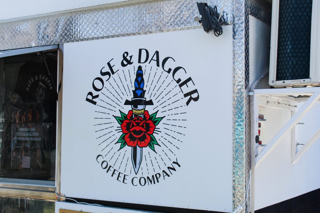 Rose and Dagger is a fire-fighter owned business which recently celebrated their one year anniversary!! Rose and Dagger sells their coffee out of a food truck in the backyard behind Teal Sky Boutique, where there is plenty of comfortable outdoor seating to study or hang out on a sunny day! Owners Jackson and Madison are recently married and met in a coffee shop they both worked at when they were 17 years old. Years later, they wanted to get back to their roots and get into the coffee business themselves.