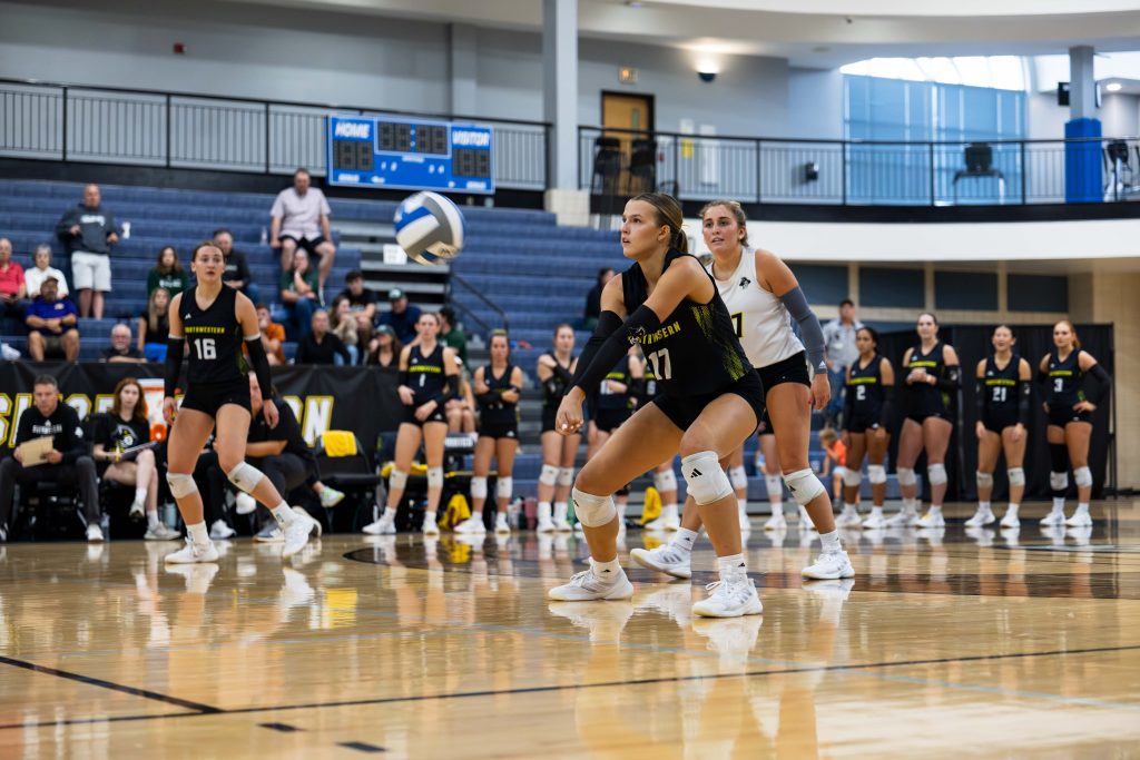 Highlights from the game include a combined 21 kills from middle blocker Kendall Jurgens ‘27 and right side hitter Emily Marks ‘26, with outside hitters Tatum Ahrens ‘29 and Chloe Blanchard ‘29 tallying 18 kills between them. Setter Annika Flora ‘26 had 33 assists.