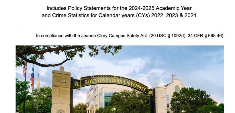 Earlier this month, an email should have appeared in your inbox talking about a document called the Annual Security and Fire Safety Report, often shortened to Annual Security Report, or ASR. Many students don’t realize that universities are required to share their ASR every year on October 1st to all students, faculty, staff, and any members of the public who wish to see it. The report must detail every single crime committed on campus for the past three calendar years, as well as explain any actions taken to improve the safety of campus. By following this link, you can look at both the combined Annual Security and Fire Safety Report, as well as a separate copy of the 2022, 2023, and 2024 Clery Statistics for Southwestern University. However, the report is long, tedious, and filled with confusing legal jargon. This article will summarize and simplify what is in the Southwestern 2025 ASR, as well as explain the history behind the document’s existence.