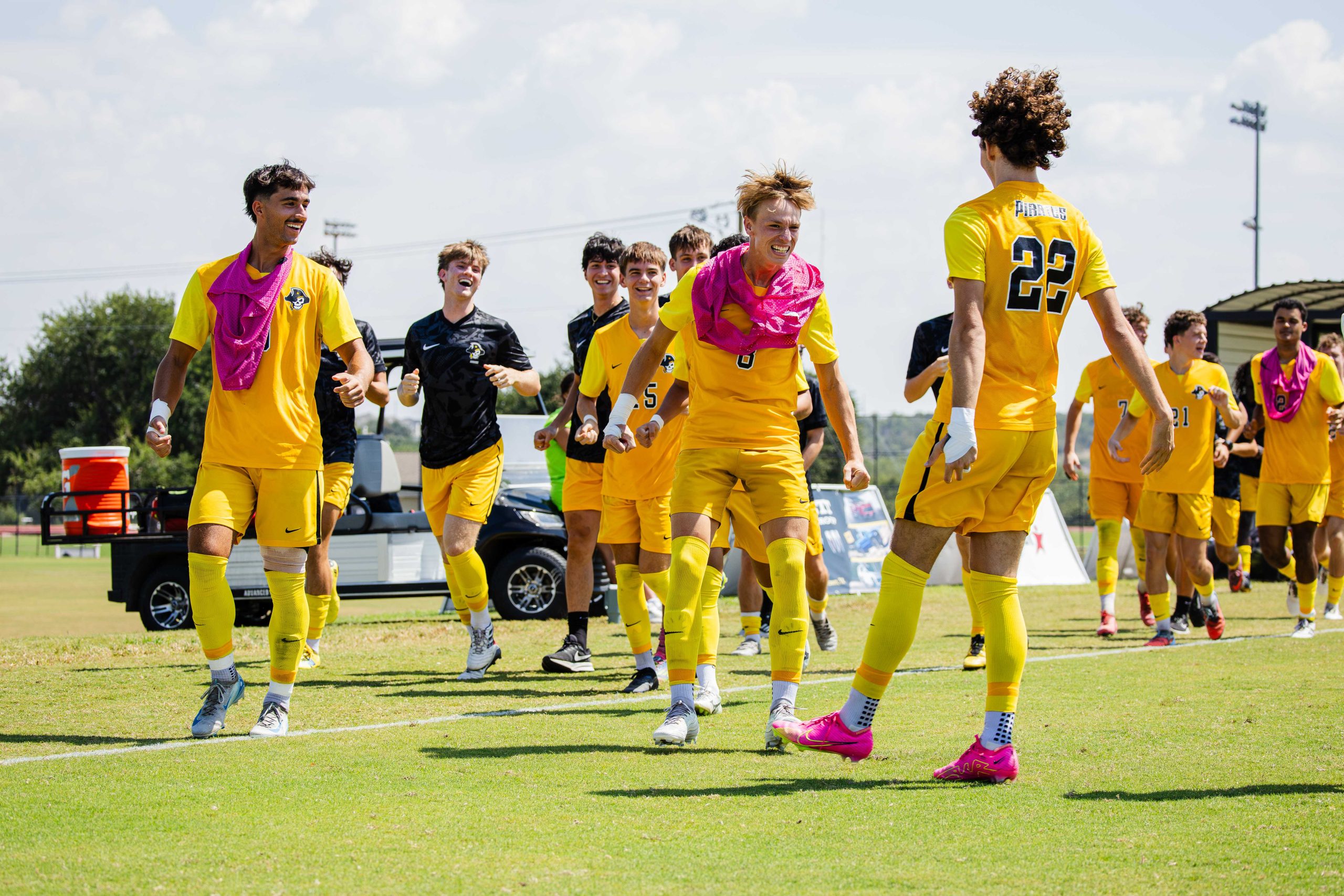 The game remained at one goal apiece for the next 35 minutes, both teams battling for possession of the game. Eventually, the Pirates get a corner kick, kicking it low to the ground to the players near the goalie. #2 Cooper Pero capitalized on the ball bounce and headed the ball into the goal, securing a second goal for the team.