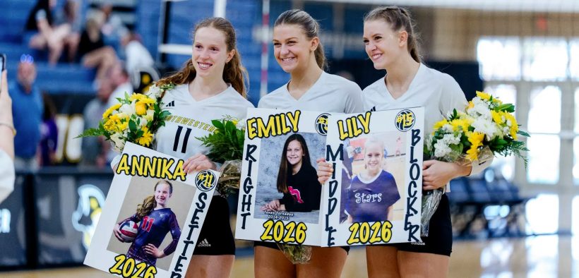 Following the spirited win, the Pirates honored their seniors: setter Annika Flora, right side hitter Emily Marks, and middle blocker Lily McWhorter.