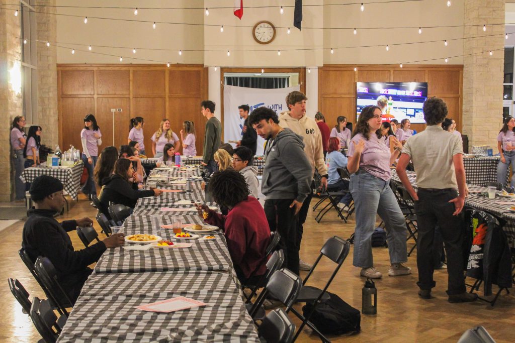 On October 29, 2025, Bishop’s Lounge came to life under twinkling lights as dozens of students clad in blue jeans and matching lavender t-shirts served pasta, breadsticks, and homemade desserts to an ever-growing crowd of hungry students. The hall was decked with blue and gold balloons, colorful fabric garlands, and a hand-painted banner featuring the words “Xiti with the Xis” in bubbly blue letters.