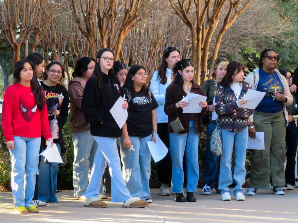 On the quiet Thursday afternoon of February 5th, Dr. Ron Swain held a memorial service for recent victims of the Immigration Customs Enforcement Agency, ICE. Around sixty students and faculty from Southwestern somberly stood outside of the Lois Perkins Chapel, in an arc around the seal to honor the memory of those lost. Each person was given a candle to hold and a sheet of paper to reference for affirmations that would be stated aloud.