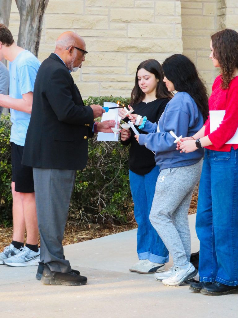 After calling out each name, and describing the impact on their local communities in life and death, Dr. Swain lit the first candle. He then used his candle to light those standing next to him; the process progressed as each person passed the flame to one another. In the background, “This Little Light of Mine” by Odetta played so that the candlelight could shine in memory.