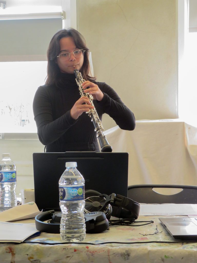 Gigi is an incredible friend of mine, and I knew she plays the oboe really well. For a compact space like the Georgetown Art Center, it just made sense to invite her to play. So I reached out and she was totally excited to be a part of it and up to the challenge. There was a problem with the musical score; for whatever reason, the website was not doing a good enough job to convert the data into a musical score. Some notes were too low and would only work for instruments like a piano, which has a wider range. So Gigi came up with the solution where we can transpose the notes and make it suitable for instruments like the oboe. This worked well because changing the octaves did not change the data itself and conveyed the same information.